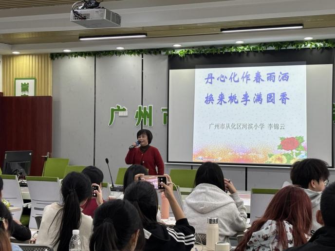 下午,河滨小学为见习生们安排了学生管理专题微讲座,由经验丰富的李锦云老师主讲。她以“丹心化作春雨洒,换来桃李满园香”为引,结合多年一线教学经历,围绕“小学课堂管理技巧”“学生日常行为培养”“家校合作管理”等核心话题展开分享。讲座既有理论层面的深度解读,也有真实案例的生动剖析。
